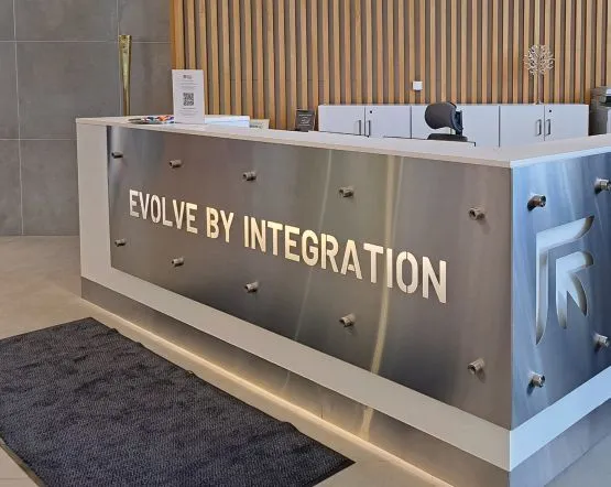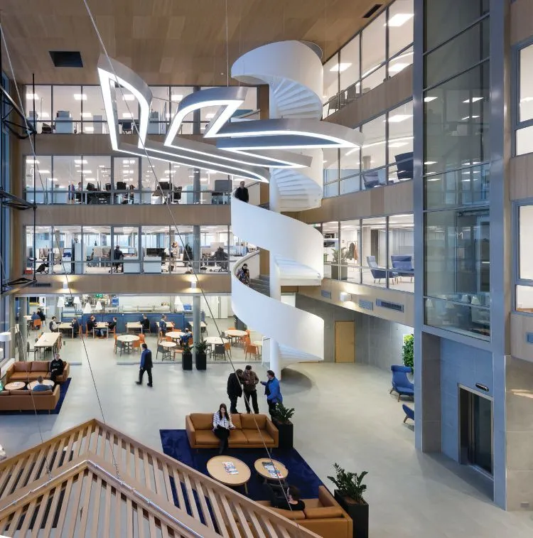 Finn-Power Oy main lobby. Visitors see demonstrations at Prima Power’s Technology Center.